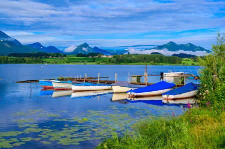 Lake Hopfensee near Fuessen - View of Allgaeu Alps, Bavaria, Germany - paradise travel destination