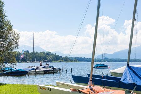 Lake Chiemsee, Bavaria, Germany - August 7th, 2016. People enjoying Their spare time and going for a sail on Lake Chiemsee.