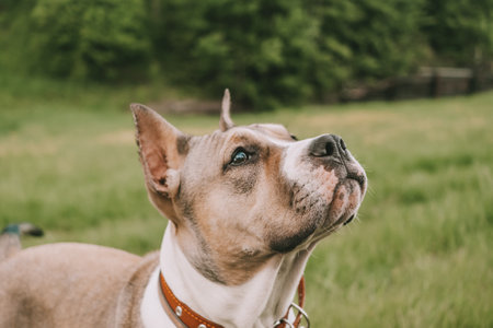 Close Up Of Beautiful Dog American Staffordshire Terrier Outdoor