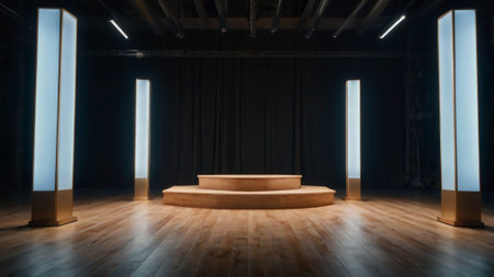 3d rendering of a podium in a dark room illuminated by a spotlight