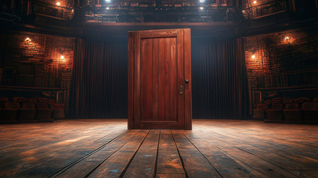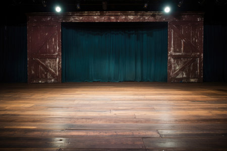 empty stage with old wooden floorboards under dim light, created with generative ai