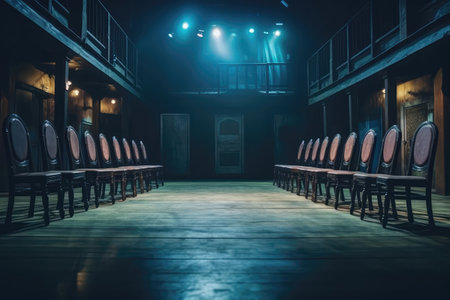 Row Of Chairs Leading To Stage, Emphasizing Linear Perspective