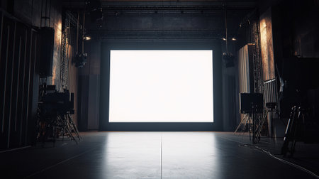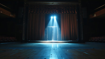 Mysterious Empty Stage with Fog and Dramatic Lighting in Dark Atmospheric Setting AI Generative