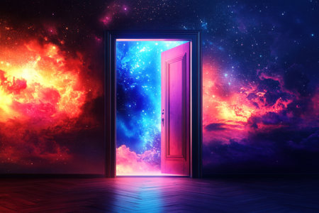 An open door to free the mind, a metaphor for fullness and freedom. Ai generated.