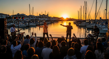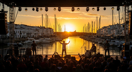 Summer Outdoor Concert With Energetic Crowd and Stage Lighting.