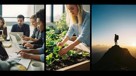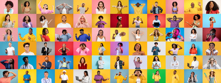 Diverse collage of smiling people expressing lifestyles in vibrant backgrounds