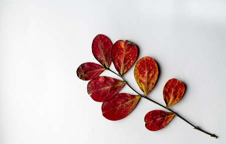 Herbarium. autumn yellow leaves on a red background. Copy space