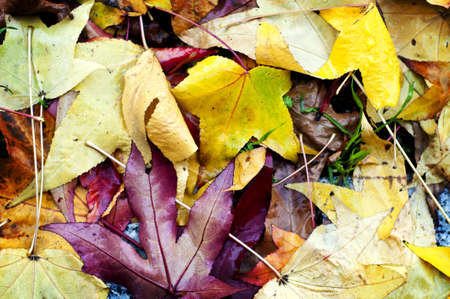 Autumn colored leaves. The drying process of leaves from green and yellow to dry pea