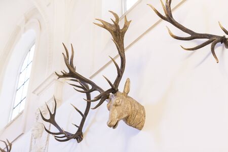 Deer antlers close up. Deer antlers on a white background.