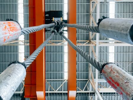 Close up of steel wire rope on oil and gas platform with blurred background for banner space