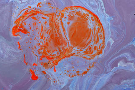 Abstract background of acrylic paints in orange and blue color tones