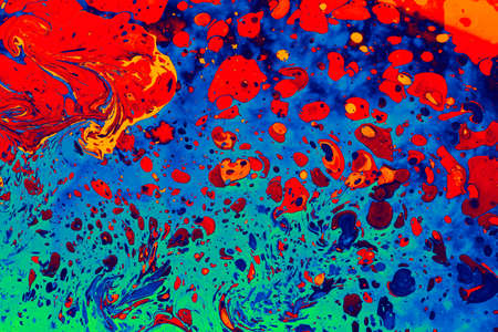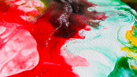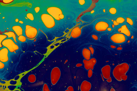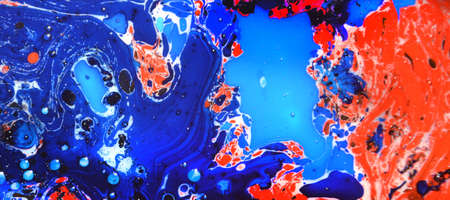 Mixture of acrylic paints. Modern artwork with spots and splashes of color paint. Liquid marble texture. Applicable for design packaging, labels, business cards, and interactive web backgrounds