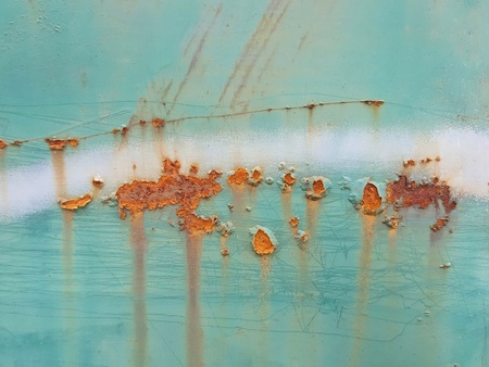 rusty iron wall from which paint has peeled off in places and rust has emerged