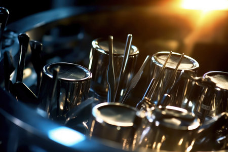 Set new drills and cutters for automatic metal processing machine, toning color