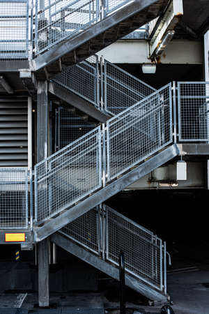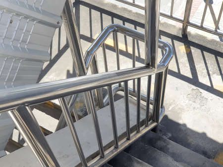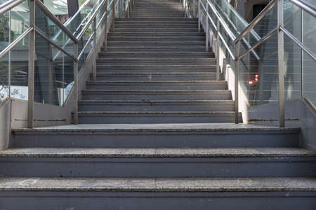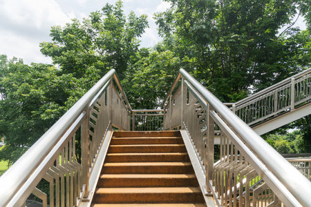 Steel stair step to walk up or walk down to the outdoor public bridge