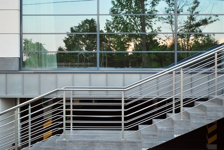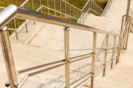 Railing And Stairs With Handrails Chromium Stainless Steel.