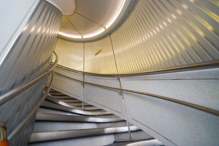 DUBAI - OCT 17: winding stairs in Airbus A380 aircraft on October 17, 2014 in Dubai, UAE. Emirates handles major part of passenger traffic and aircraft movements at the airport.