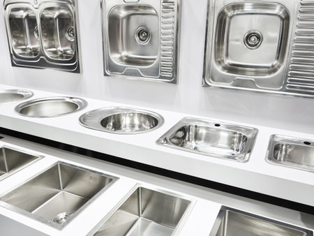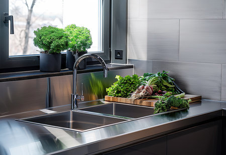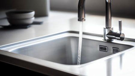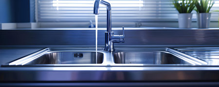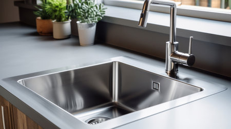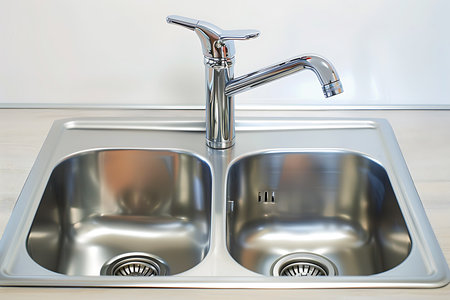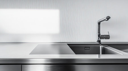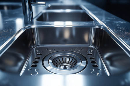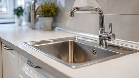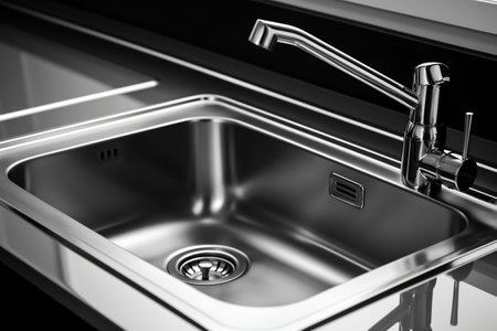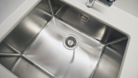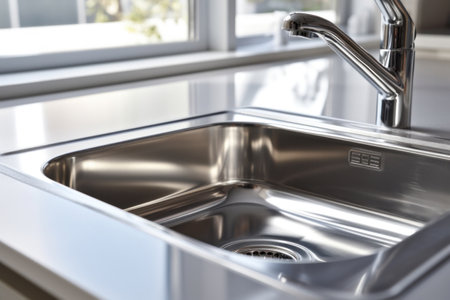 Stainless steel sink in a modern kitchen with polished finish and sleek faucet design