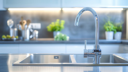 A sleek, contemporary kitchen featuring a streamlined stainless steel basin and a polished chrome faucet, embodying clean lines and minimalist elegance