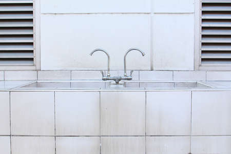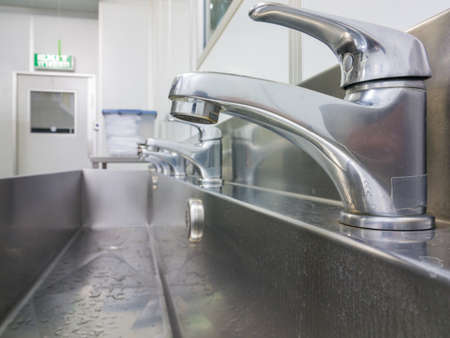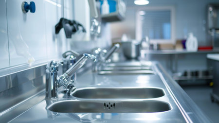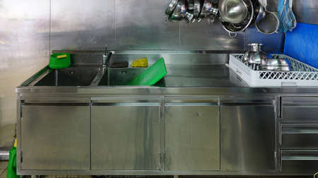 large stainless steel sink in an industrial kitchen for preparing meals in the canteen