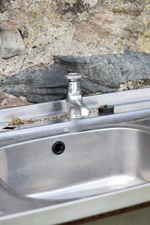 Water drains into the sink, sink and running water for the background, takes care of the water