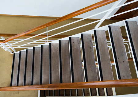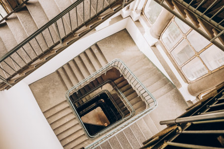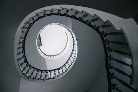 Aerial view of a spiral staircase inside a modern building. Abstract architectural background.