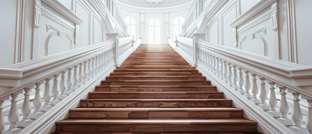 Spacious Wood staircase house. Cozy abstract. Generate Ai