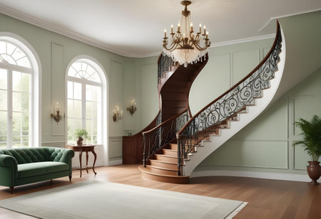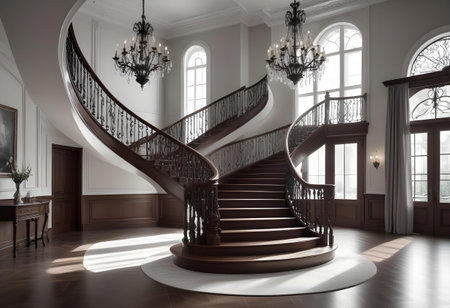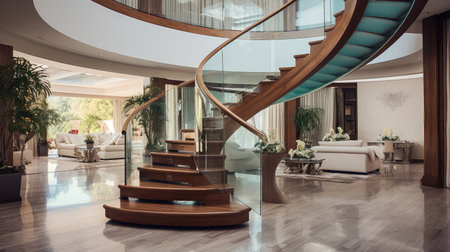 Elegant spiral staircase designed with modern architecture in a minimalist interior setting