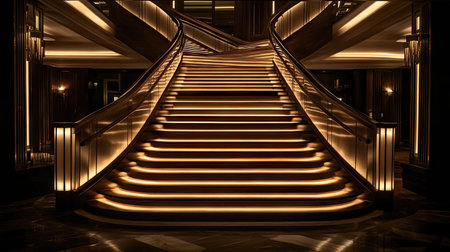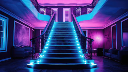 Luxury staircase illuminated by modern lighting equipment generated by artificial intelligence