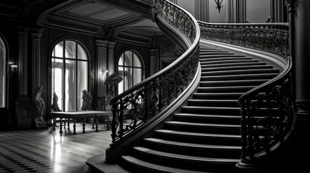 Antique wrought iron staircase showcases elegance and history indoors generated by artificial intelligence