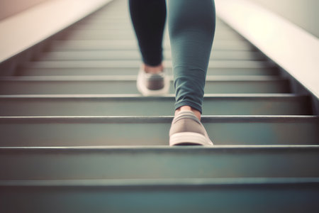 Active Lifestyle Person Climbing Stairs Symbolizing Progress and Achievement in Health Journey