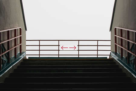 Stairs in the overhead light bulb at the top of the day reflects the path to hope and the next step.