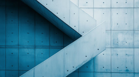 A sleek concrete staircase ascends against a textured blue wall highlighting minimalist architecture in an urban environment