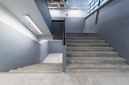 Empty fire exit staircase in hotel. Architecture interior design decoration.