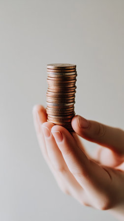 Person holding coins, symbolizing financial concepts like savings, investment, and wealth. Capture money management, planning, and growth