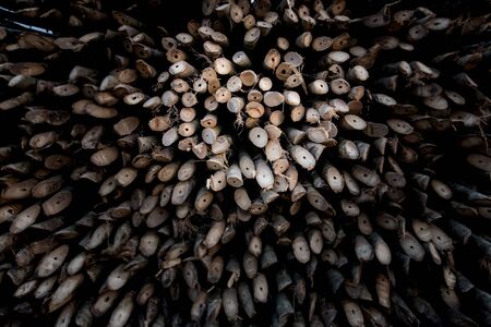 Exactly trimmed cuttings of branches without bark. Composition of wood.
