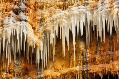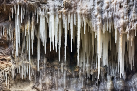 close up of stalactites and stalagmites formation, created with generative ai