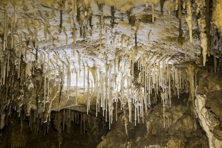 cave with white natural stalactites