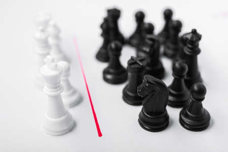 Comparison of poor and rich, black and white in the form of chess pieces. Bounding the group with a red line. racism concept background.