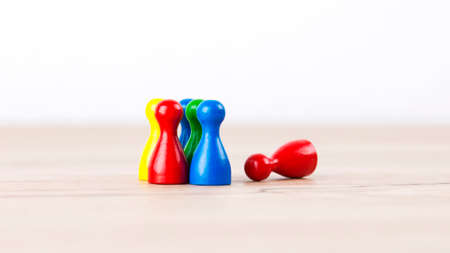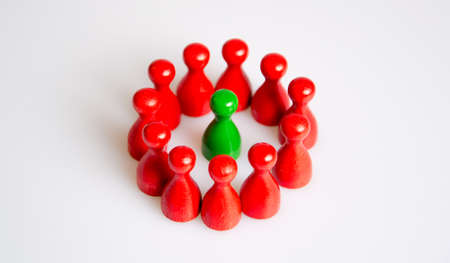 Man hand chooses red wooden peg doll. leadership and business team creative thinking and human resources for teamwork or team player concept. Toxic people