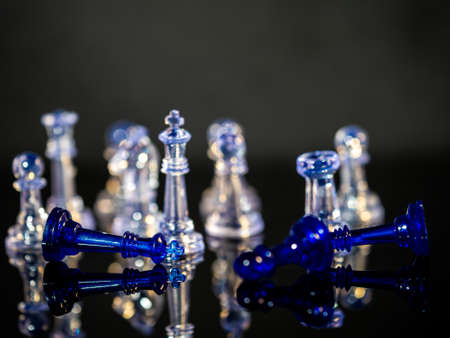 Glass chess figures against blurry background