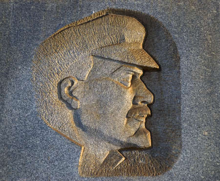 MOSCOW, RUSSIA - March 24, 2020: Side angle view of marble bust of Joseph Vissarionovich Stalin, in Fallen Monument Park