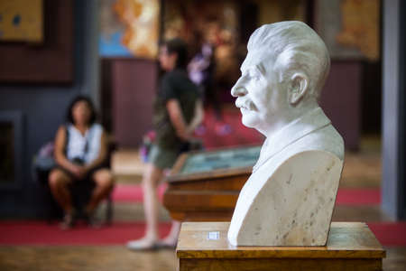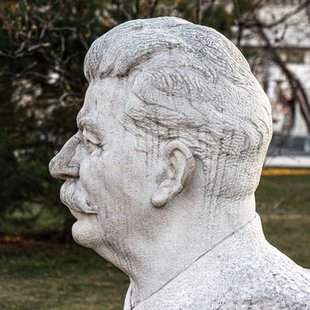 MOSCOW, RUSSIA- APRIL, 24, 2018: Marble bust of Joseph Vissarionovich Stalin, in Fallen Monument Park, Moscow