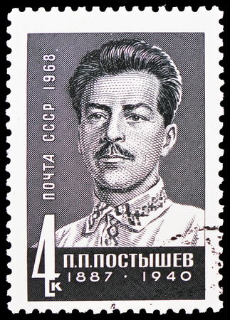 MOSCOW, RUSSIA - FEBRUARY 20, 2019: A stamp printed in Soviet Union shows Pavel Postyshev (1887-1939), Soviet Statesmen serie, circa 1968