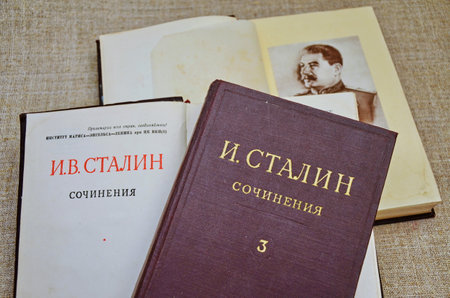 November, 2020. Lviv. Ukraine. Books with a portrait of Stalin and his written works.