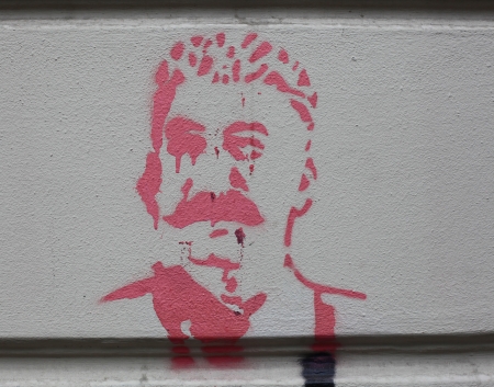 Graffiti image of Joseph Stalin painted on a wall in Tbilisi, Georgia, the country of Stalin's origin