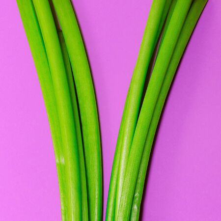 Fresh green celery on color background