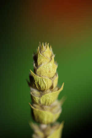 macro close up Equisetum arvense horse tail dry plant, selective focus, tea