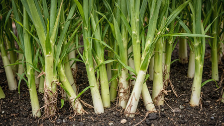 Vibrant lemongrass growing in rich soil long fragrant stalks standing out