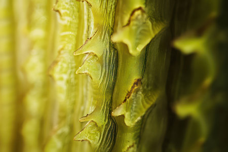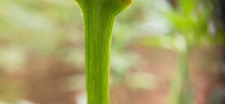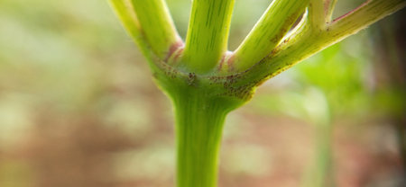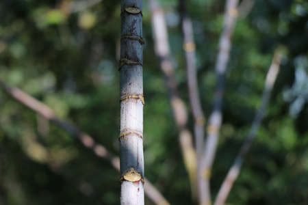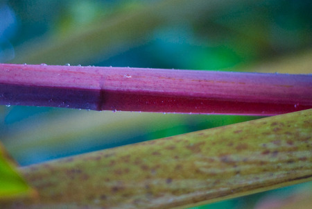 Ricinus communis or Castor plant trunk closeup with showers of sunlight on specific areas
